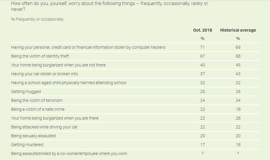 The fact is that most Americans are far more concerned about having their personal details stolen than they are about being a victim of a violent crime.