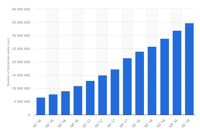 (Image showing a number of blockchain wallet users. Image Source: Statista)