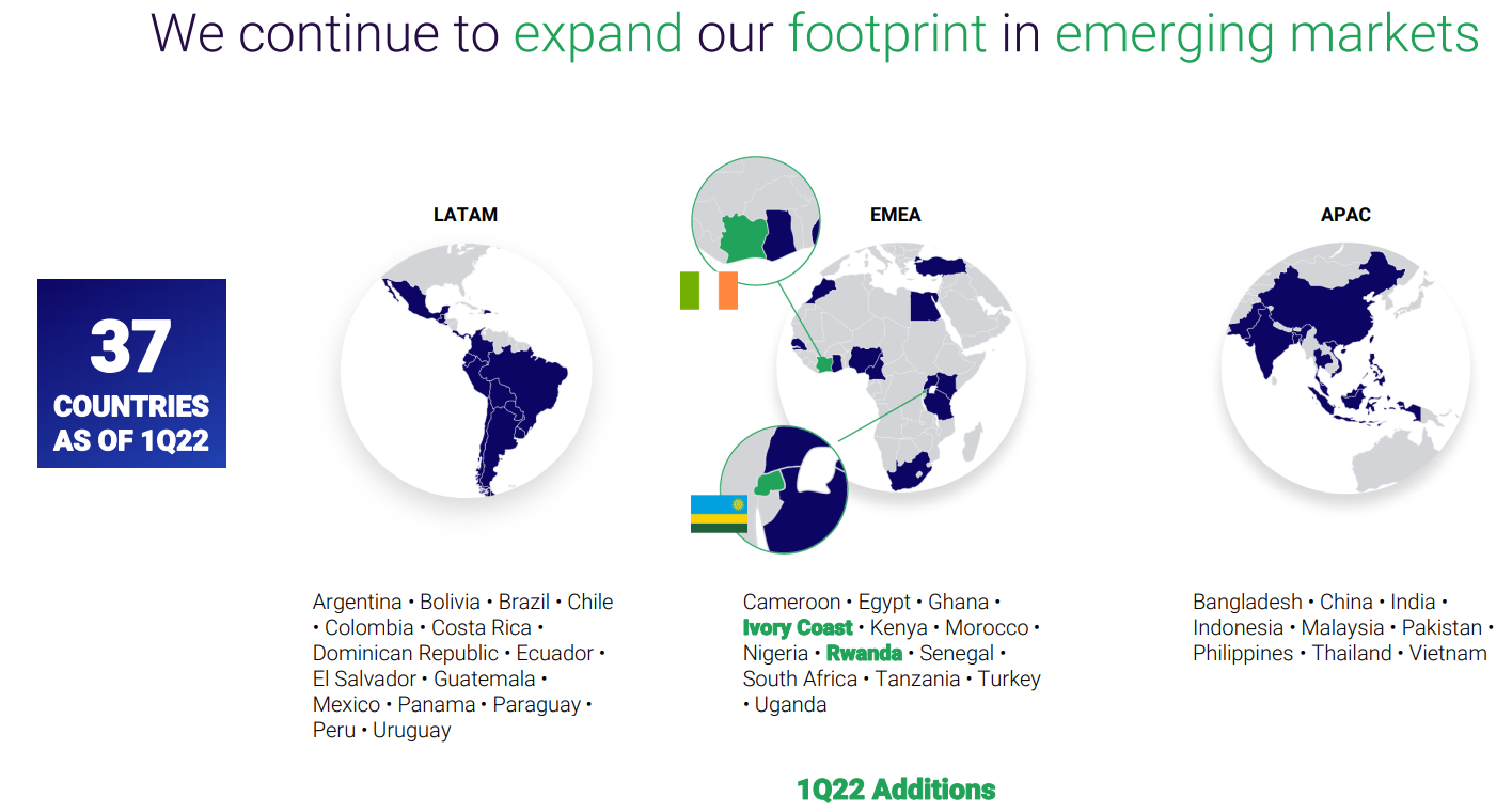 - DLocal is diversified across emerging market geographies and industries, while having no exposure to Russia or Ukraine.