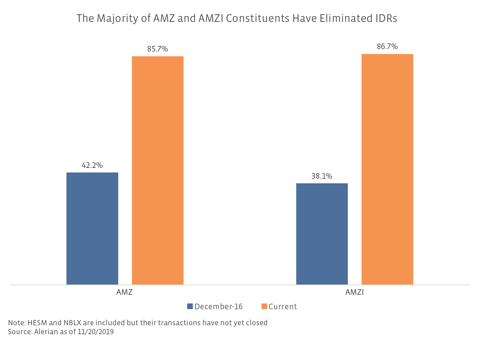 - The vast majority of AMZ and AMZI constituents have eliminated their incentive distribution rights since 2016.